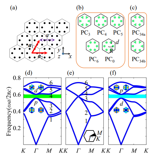 图1 C6对称和类C6对称光子晶体结构及其能带结构