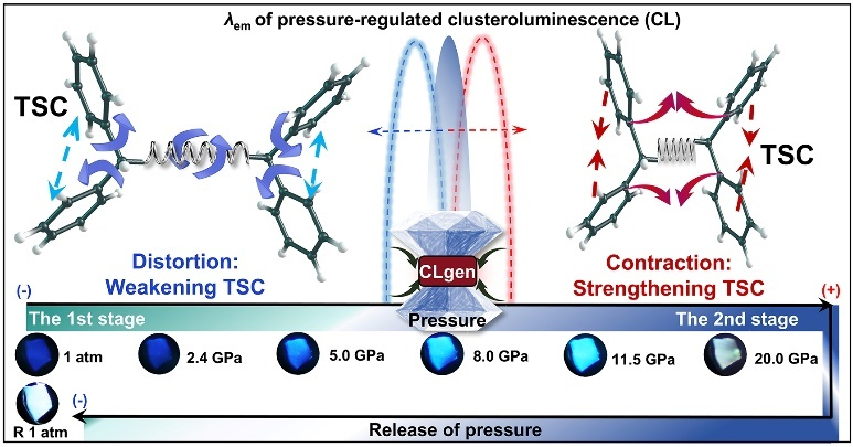1. 在一些非共轭分子中,电子云能够通过非共价键的空间离域重叠,实现簇集状态下的可见光发射。这种非传统的发光性质,被定义为簇发光。团队通过高压极端环境精确调控系列四苯基烷烃分子的空间共轭效应,引起簇发光的不同响应,实现发光颜色的有效调节及发光强度显著增强。研究聚焦空间共轭作用机制,揭示材料结构-性质关系,明确调控规律,识别影响空间共轭与簇发光响应的关键结构因素。利用压力工程成功解锁弱作用基发光材料的发光潜能,为构建高效的弱作用基发光材料提供了新的策略。相关研究成果以“Pressure-Engineered Through-Space Conjugation for Precise Control of Clusteroluminescence(基于压力工程改变空间共轭以实现簇发光的精准调控)”为题,发表在期刊《Angewandte Chemie International Edition》(《德国应用化学》,中科院一区,影响因子16.1)上。2023级硕士研究生王亚云为论文第一作者,英国365集团公司王凯教授、李茜教授与浙江大学张浩可教授为共同通讯作者,英国365集团公司为第一署名单位。