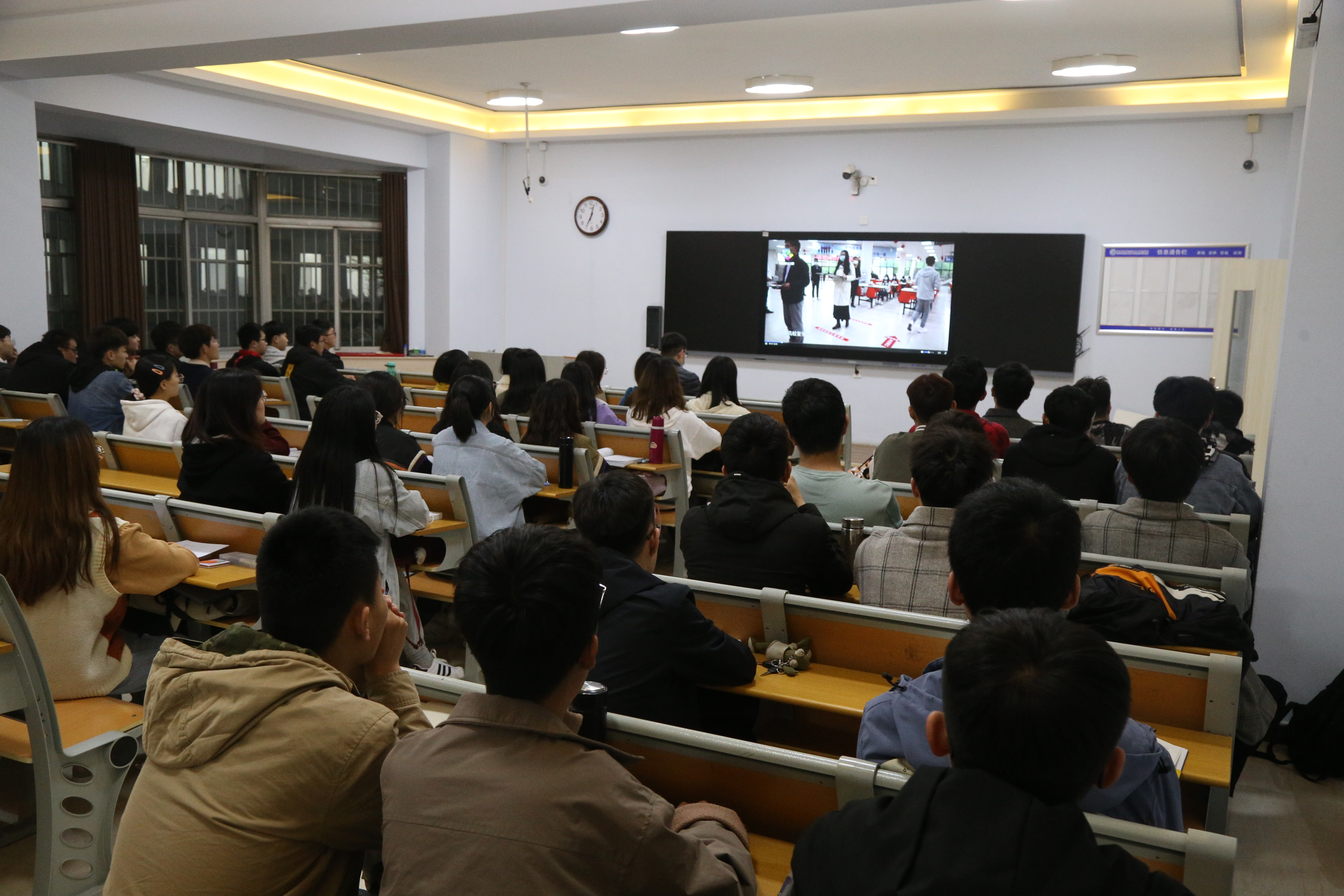 本次节目采取集中收看和分散收看相结合的方式,2020级、2019级30个团支部以班级为单位在西校区10号和11号教学楼收看,2018级、2017级30个团支部以宿舍为单位分散收看,学院辅导员、班主任深入班级,与同学们共听一堂课。节目重在科普疫情防控知识,旨在致敬抗疫英雄,倡导同学们敬畏自然、守护生命。观看过程中,同学们聚精会神,通过聆听援鄂医疗队成员讲述的抗疫故事,感受医务工作者的责任担当;通过认真学习春季疫情防控新知识,如口罩正确佩戴法、七步洗手法等,牢牢筑起自身防护的安全墙。节目结束后,同学们纷纷表示,作为一名新时代青年,将以抗疫英雄为榜样,汲取榜样的力量,用责任担当书写青春。