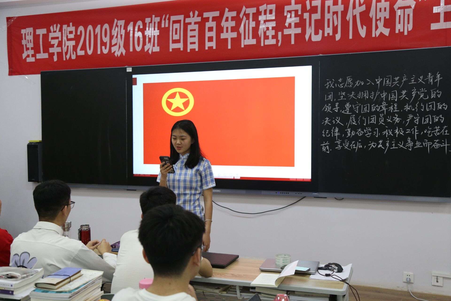 以史鉴今,以史育人。各级团组织结合实际开展了主题突出、特色鲜明、形式多样的主题团日活动来引导广大团员青年了解党的光辉历史、感悟党的初心使命、领会党的创新理论、体认党的精神谱系、传承党的红色基因。其中,19级16班团支部创新活动形式,以“回首百年征途,牢记时代使命”为主题,通过重温入团誓词、观看红色电影、开展知识问答等形式,不断加深同学们对党史内涵的理解与领悟,深刻体会到学习党史的重要性和必要性,进一步增强同学们的历史责任感和使命感。以史为鉴,奋发向上。20级14班团支部则以“追寻党史 百年记忆”为主题,组织本班同学开展了相关知识理论学习、合唱红歌、开展红色诵读等团日活动形式,增强了广大团员青年学习党史的兴趣,让百年党史深入青年心,激励青年从历史中获得启迪,以更加昂扬的精神状态和奋斗姿态奋进新征程、建功新时代。