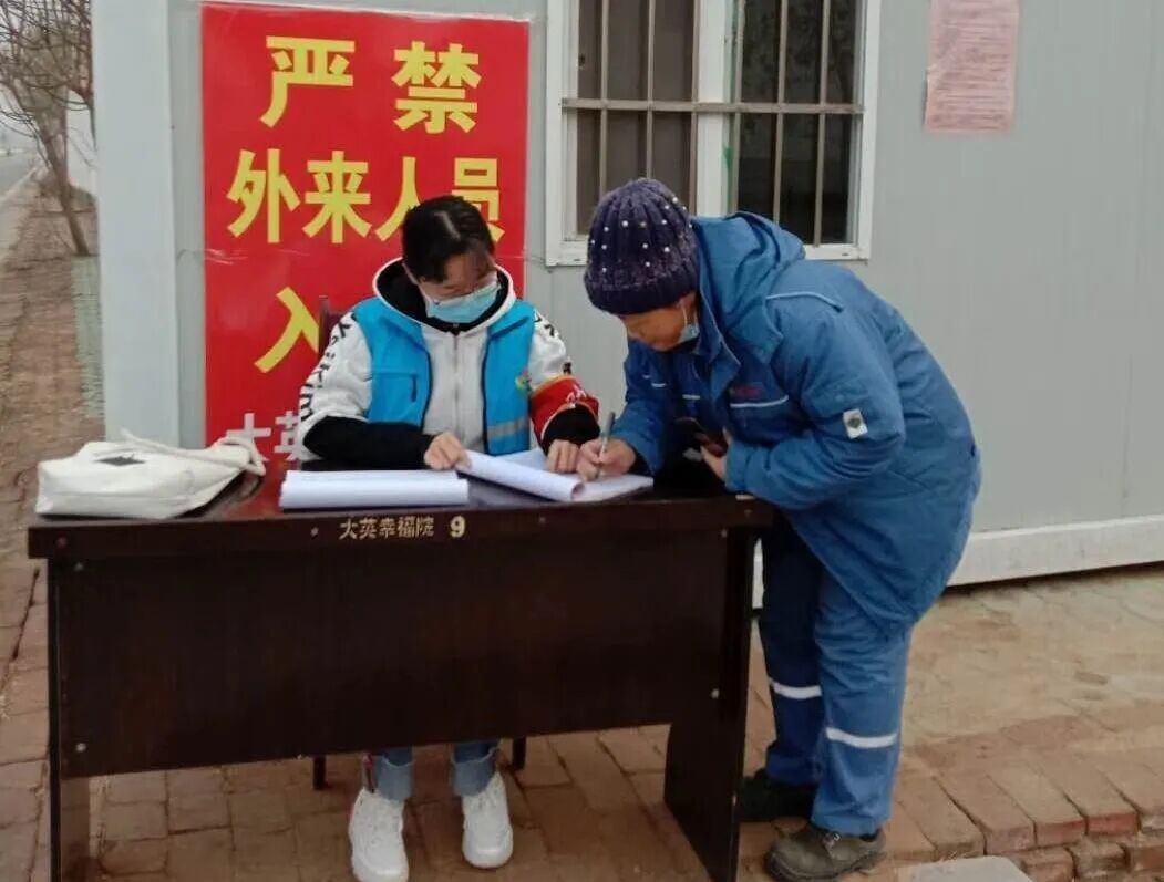 2.疫情防控示范者——身体力行,志愿一线我在岗 年关将至,为进一步做好疫情防控工作,减少村子里人员流动,薛文清主动请缨,积极协助和参与村子的相关疫情防控工作安排,在设立的卡口进行登记工作。根据工作要求值守卡口,尤其是对拖行李箱的外来人员进行登记,对存在体温超标和发热的人员进行登记备案,确保逢过必检,不落一人,做好疫情防控严把关口。