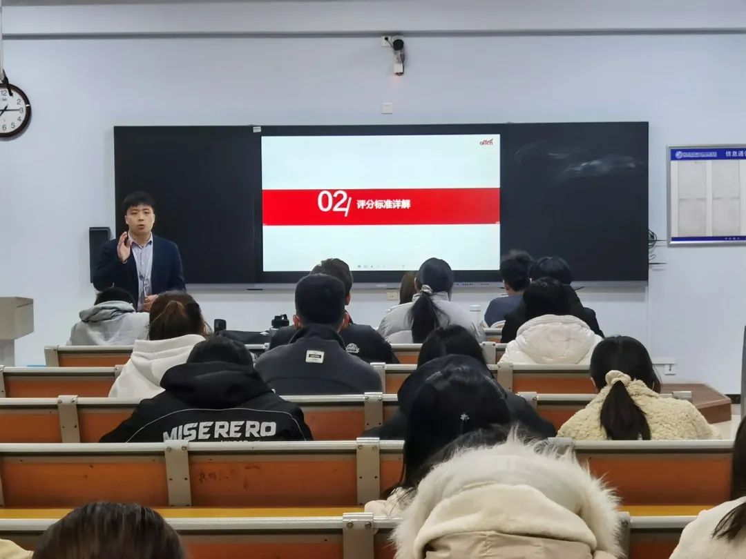 培训活动开始前,工作人员布置会场,采用签到制度,入口处安排同学引导前来参加活动的学生入座,为同学们解答相关问题。此次活动特邀请中公教育的老师为我们进行培训讲解。 活动相关人员到齐后,19:00培训正式开始。本次培训会由中公教育的孙磊老师为我们讲解。常言道:授人以鱼不如授人以渔,在如今竞争日益激烈的就业市场上,掌握有效的就业信息获取渠道能大幅降低就业的难度,让同学们赢在起跑线上。孙磊老师由两方面展开,第一方面是结构化面试,第二方面是评分标准讲解,细致入微的讲评深入剖析了求职的注意事项,使大家在面试时做到规范化,专业化,减少因细节失误而错失就业良机的遗憾,满足了同学们的真实需求。一个小时的讲座在大家钦佩热烈的掌声中圆满结束。