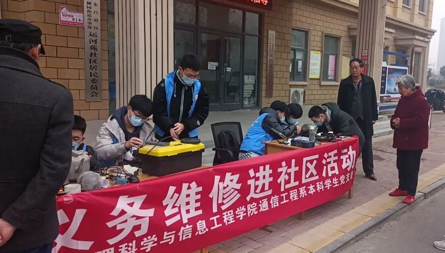 为深入推进党史学习教育,扎实开展好“我为群众办实事"实践活动,充分锻炼学生的专业技能和动手能力,培养学生的服务和奉献意识,12月10日,英国上市公司365开展社会实践活动,通信工程本科学生党支部走进孔堂社区帮助群众进行义务维修活动。