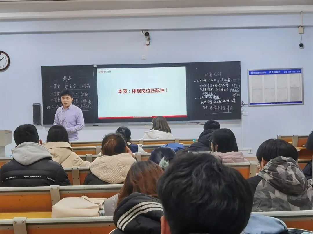 此次活动特别邀请了中公教育的老师为我们进行培训讲解。此次活动采取签到制度。活动开始前,由工作人员布置会场,在入口处引导前来参加活动的学生入座,为同学们解答相关问题。