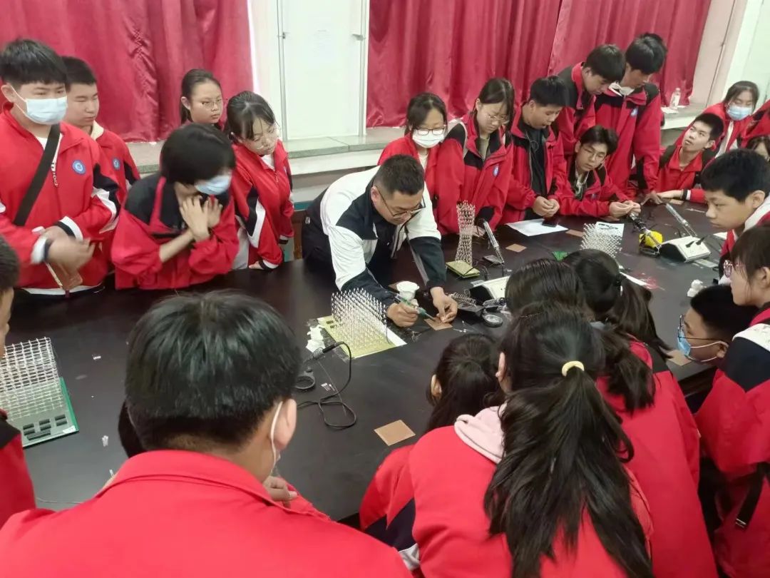 在科技微课堂志愿者们的带领下,同学们参观了位于综合实验楼5楼的数电、模电实验室和9楼的光学实验室。随后,E通科技社的成员结合自己的制作过程,对电路、光立方、广州塔和智能小车等作品进行了详细的讲解和全方位的展示。紧接着,三维协会的成员展示了3D打印的作品并讲述了工作原理。
