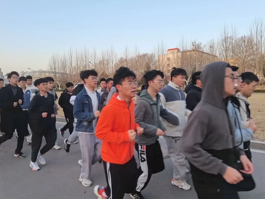 三月的天气微凉,但同学们的热情十分高涨。集合、挺胸、收腹、目视前方、匀速奔跑,每一个动作都展现着青春与活力。随着一声声口号划破日暮,同学们一方面规范着自身良好的跑姿,另一方面兼顾着晨跑队伍的整齐划一,行行对齐、列列对正。