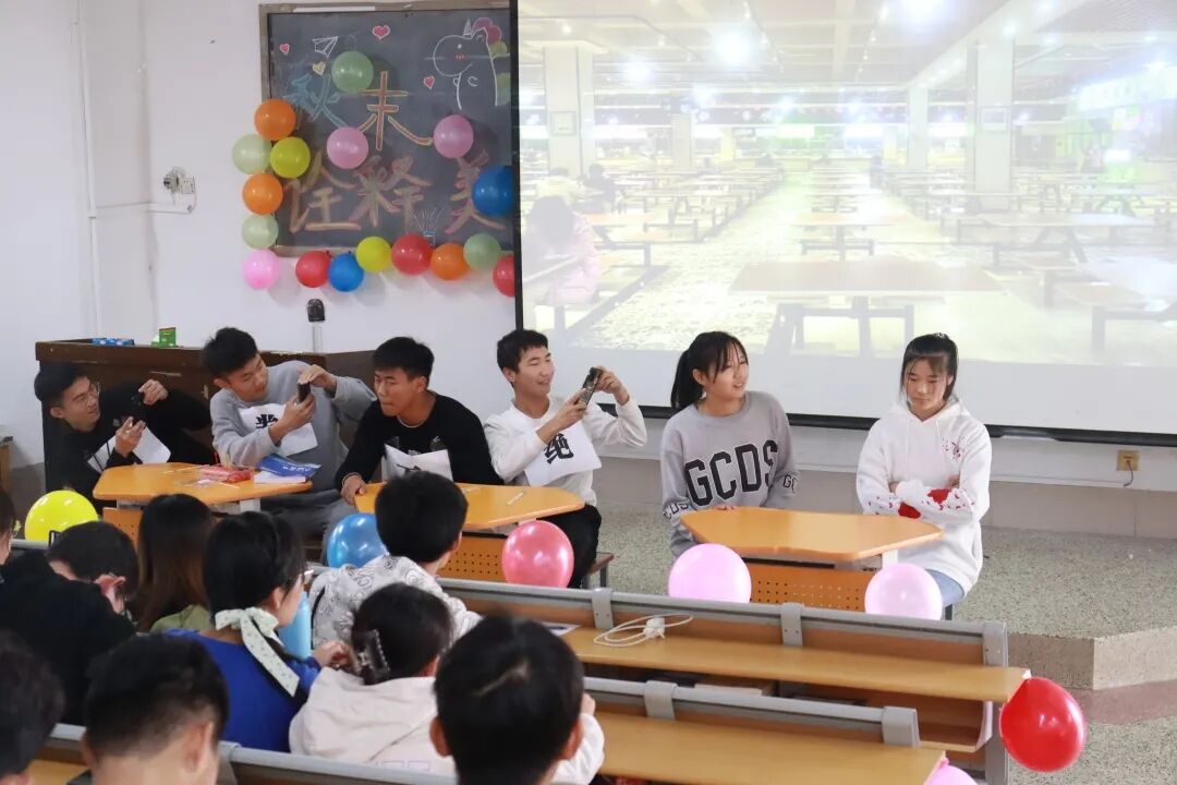 随着主持人的致辞,“秋末·诠释美”在这秋风送爽的日子里拉开了帷幕,同学们的热情也将这萧瑟的秋季点燃。随着同学们的期待,迎来了第一个节目——小品《内卷不绝》,幽默诙谐,逗得观众捧腹大笑,精彩的表演开了一个好头。接着,一曲沁人肺腑,悠扬婉转的《大海》,更是将气氛推向了高潮。随后上场的PPT演示亦不甘落后,参赛者们借助幽默风趣的语言讲述身边的美好,一张张精美的PPT展现了大家温暖的日常生活,一段段讲解饱含了温馨的同学情。激动人心的“抢凳子”游戏为观众们带来阵阵欢笑;“击鼓传花”游戏带动了全场紧张刺激的情绪。活动伴随着激情的小游戏,流连忘返的小品,美妙的音乐圆满结束。
