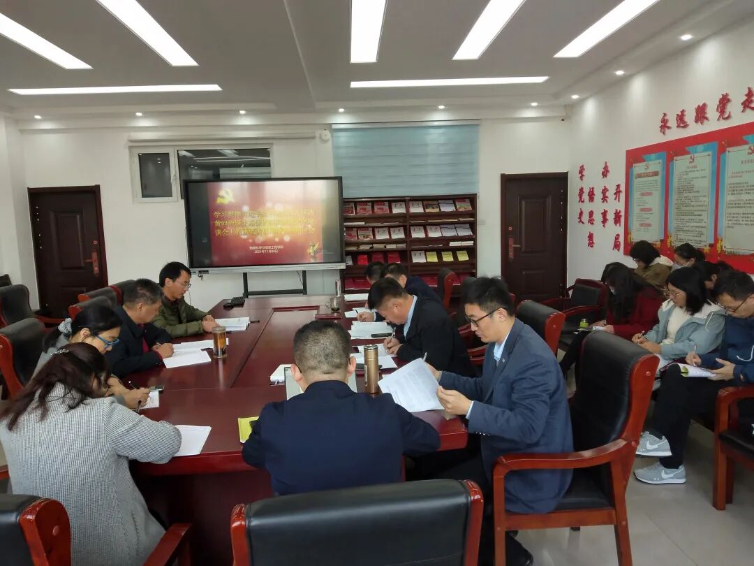 学院党总支书记邵鑫带领大家学习了习近平总书记在深入推动黄河流域生态保护和高质量发展座谈会上的重要讲话精神和视察山东重要指示要求。