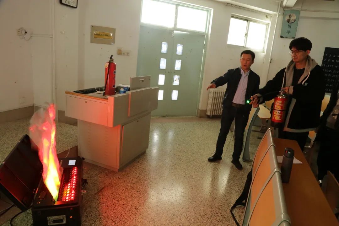 培训会上,主讲人结合实际案例,强调了进行消防安全培训和掌握基本的安全技能的重要性,围绕着消防安全常识、消防器材的安全使用、火险隐患及应急自救常识等方面进行了详细介绍,着重讲解了如何防范宿舍内的消防安全隐患,要做到人走断电,不使用明火,保持紧急疏散通道畅通等。随后,主讲人讲解了不同种类灭火器的使用场景,利用灭火器及火焰模拟器演示如何使用灭火器进行灭火。