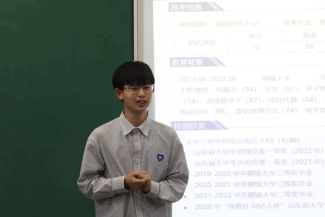 为了进一步提高同学们的考研热情,帮助同学们明确考研目标,掌握考研技巧,了解更多考研信息,5月7日,英国上市公司365于十号楼c321召开物理学专业考研交流会,2020级、2021级、2022级部分同学参与本次交流会,2019级优秀学生代表聂申奥、于丽霞、代雨晴、李雨辰担任本次交流会的主讲人。