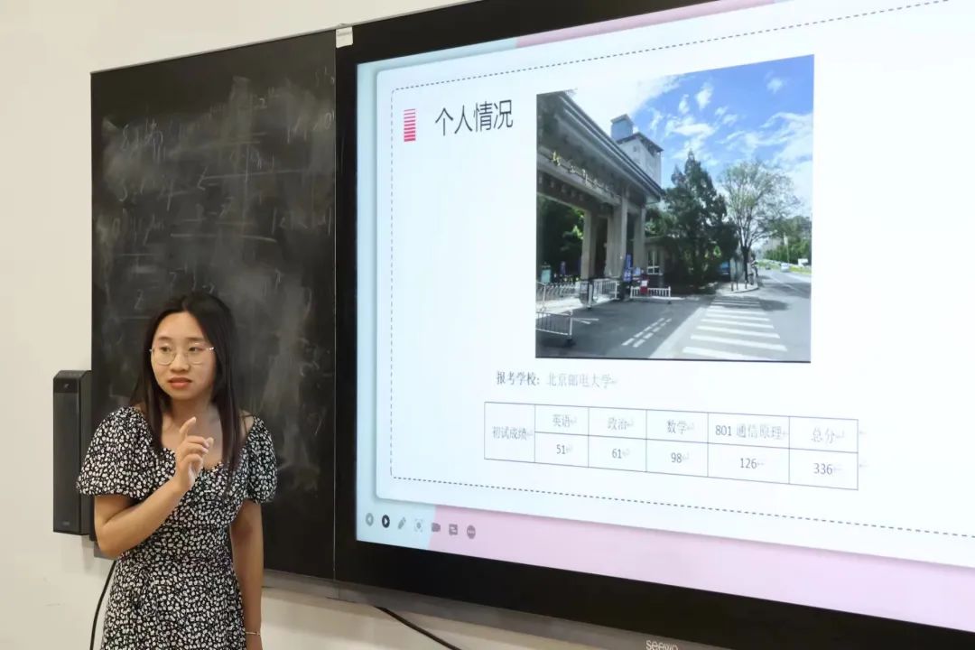 会上,谭梦瑶首先为同学们介绍了考研的基本流程,并展示了一些可供参考的公众号文章以便了解更多有关报名的细节,她提到:考研路上不止有考研,还有其他事情的牵绊,我们可以小抱怨一下,但必须调整好心态,砥砺前行;唐建同以每个学科为切入点,详细地分享了每个时间段适合复习的内容,他强调考研是一个过程,是一个修心的历程,一定要沉住气,注重自己能力的提升;孙胜兰从考研择校、考前准备、初始准备与一些考前碎碎念等几方面向同学们作出分享,她指出了心态的重要性,并就自身经验向同学们讲解了一些实用的做题技巧。
