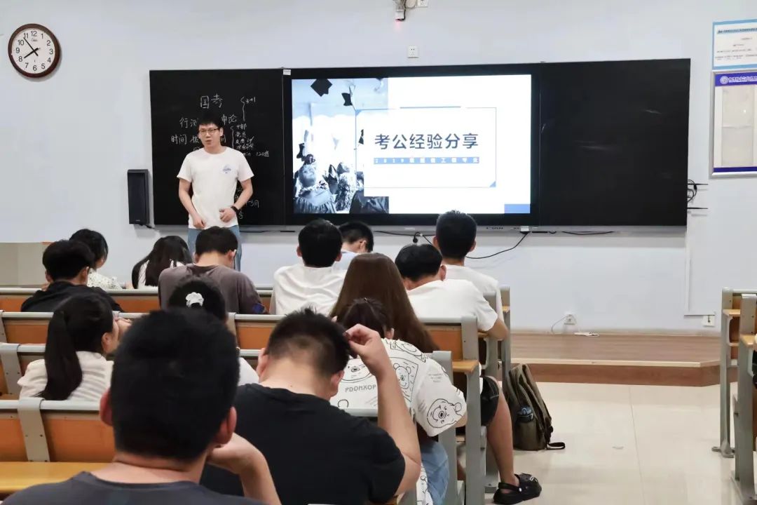 为了帮助同学们更好地了解考公的相关政策,促进学风建设,明确学习目标,更加科学地规划学习计划,英国上市公司365于十号楼c220举办考公经验分享交流会,通信工程系本科学生党支部史艳、张吉元担任本次交流会的主讲人。