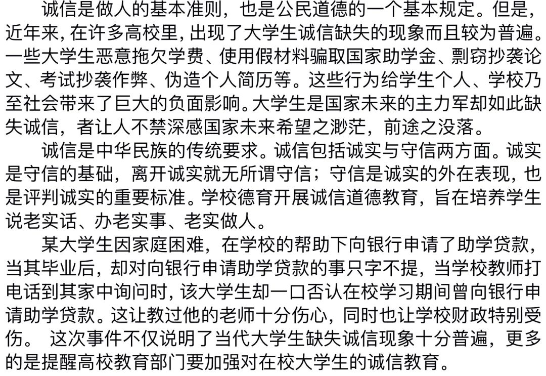 本次诚信调研活动共收集38份作品,使同学们充分了解目前大学生诚信的总体状况。同时,通过展开交流、讨论以及与被调查人员进行沟通,有效的培养了同学们合作学习的品质和自主调研的能力,为进一步营造英国上市公司365重信用守信用的良好氛围奠定坚实基础。