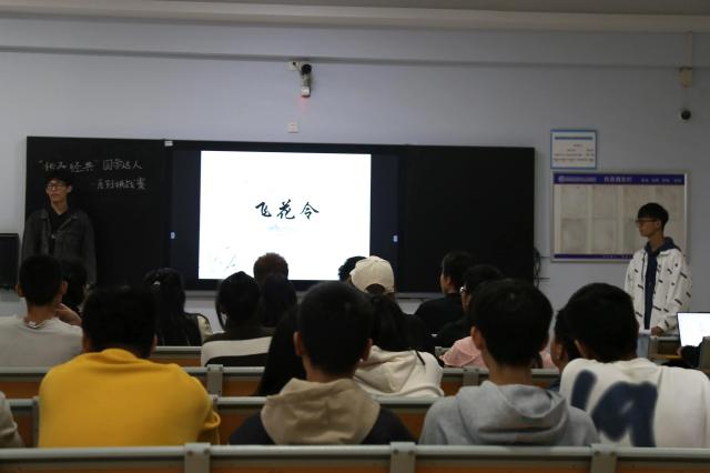赛前,参赛选手都精心准备、积极备战,争取发挥出最佳水平、展现出最好状态。比赛伊始,“扪参历井仰胁息,以手抚膺坐长叹”一句将同学们由浅入深地代入紧张而刺激的竞答环节中,营造了紧张刺激的氛围。问题即出,同学们竞答有序、争都上渠,于竞赛的激烈热诚中亦可见同学们的礼貌端庄,诚然一幅“百花齐放,百家争鸣”之盛况。一时间,流淌于上下五千年历史长河中的诗词歌赋浮现在同学们眼前,有效提高了同学们的文化自信力与认同感,不乏美赞。