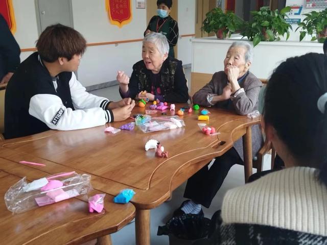 当天,EICAS英语社团成员们一早就来到聊城鑫泰颐养中心,给爷爷奶奶们送去了亲切的问候,询问他们的日常起居,并聆听他们分享自己的故事。社团成员们还陪老人们做手工,活动室里洋溢着温馨活跃的气氛,老人们开心地围坐在桌边,感受着手工的乐趣。经过一番制作,一件件活灵活现的作品诞生了,大家一齐绽放了灿烂的笑容。社团成员们的到来,为老人们送去了陪伴与物质上的帮助,不仅使老人们心里感到慰藉,也使社团成员们自身感到心中无比温暖。社团成员们离开之时,老人们纷纷流露出了对社团成员们的不舍。