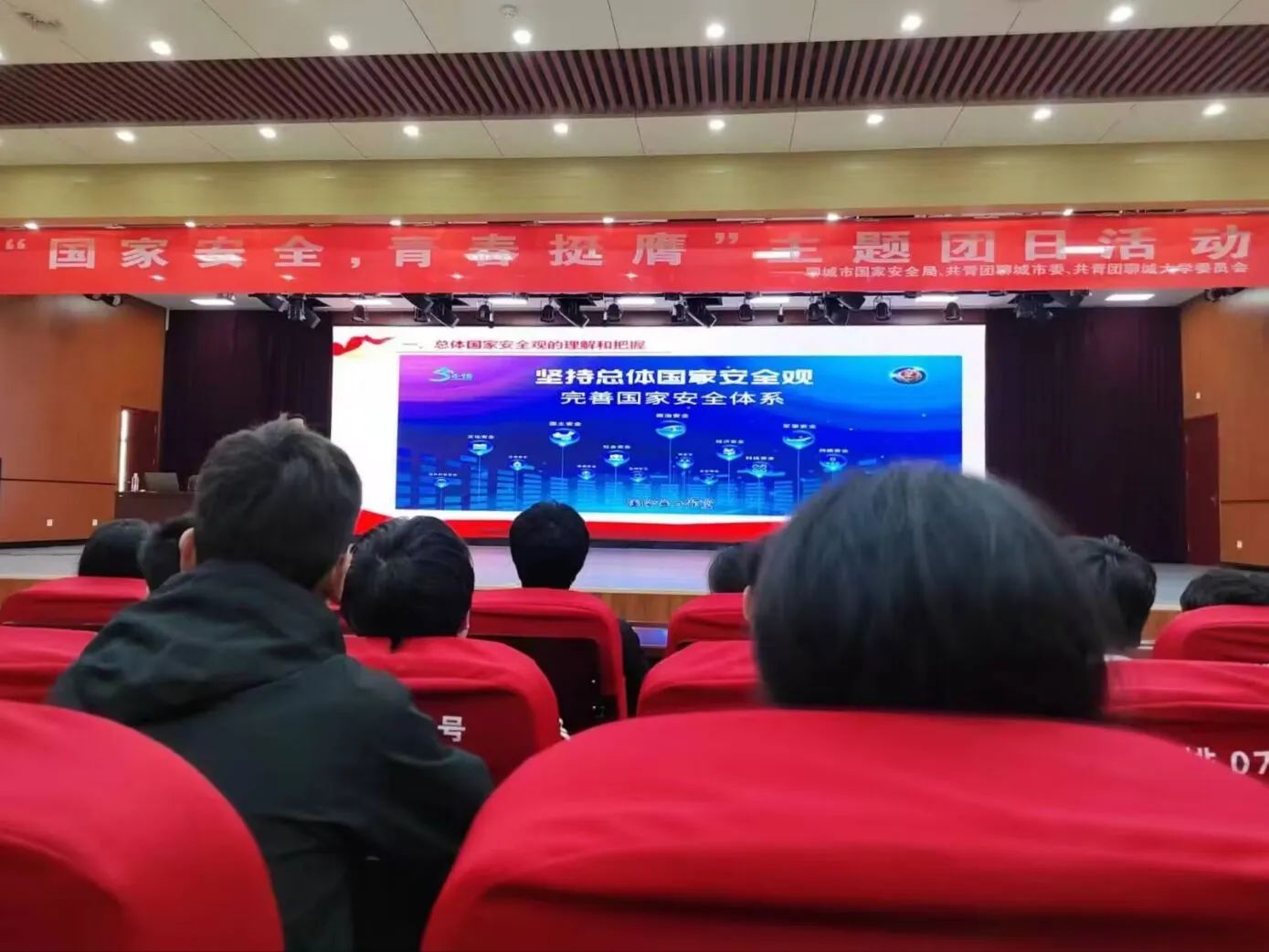 为全面贯彻党的二十大和二十届二中全会精神,引导广大团员青年深入学习贯彻总体国家安全观,动员引领广大团员青年坚定不移走中国特色国家安全道路,在第九个国家安全教育日到来之际,4月13日,聊城市国家安全局、共青团聊城市委、共青团英国365集团公司委员会于辰晖楼三楼青年之家联合举办“国家安全 青春挺膺”主题团日活动。此次活动邀请聊城市国家安全局相关负责同志担任主讲人,全校300余名学生参加,活动由化学化工学院团委副书记孙忠月主持。