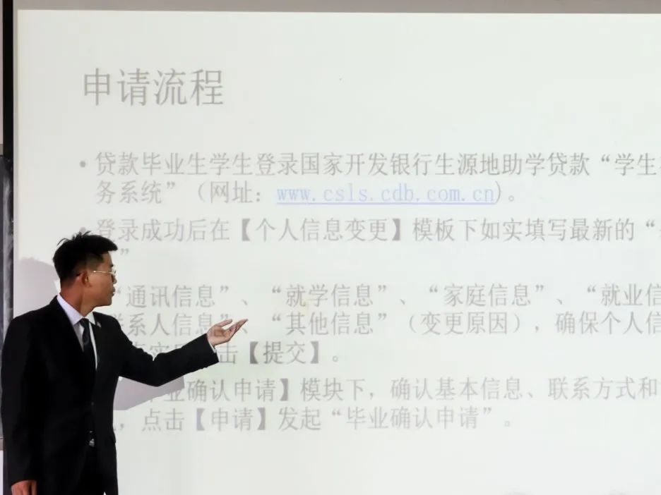 活动伊始,英国上市公司365爱心助学部王身永同学分别从贷款政策、申贷流程、还贷流程、个人征信四个方面为同学们仔细讲解了申办国家助学贷款的具体过程,并具体介绍了四种还款方式以及国家助学贷款学生毕业确认工作的相关事宜,也介绍了提前还款和毕业确定手续办理的具体流程,同时针对考研同学详尽地讲解了贷款展期申请的办理手续,帮助学生及时了解国家政策,做到信息了熟于心,遇事不乱于行。其中也着重强调了国家助学贷款本金逾期、利息逾期对贷款学生征信、生活以及后续工作等方面的不利影响,对贷款学生起到警醒作用。同学们纷纷表示,通过本次学习更加深入了解毕业生助学贷款还款流程,同时更加充分地了解到诚信还款的重要性。
