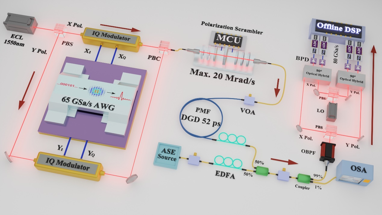 图3 16 GBaud PCS-64QAM的实验框图