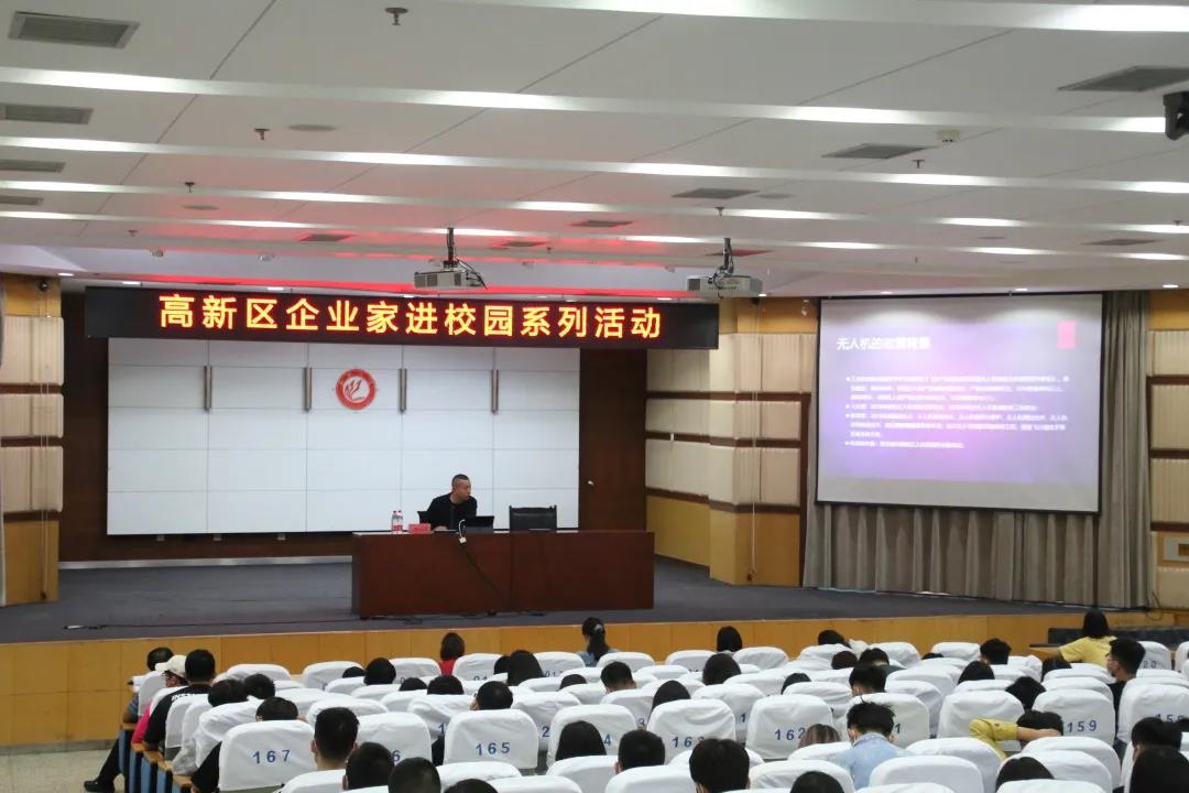 李洪涛简单介绍了聊城长颈鹿智能科技有限公司的基本情况。随后,他从无人机的相关政策入手,由浅入深地对无人机的发展进行讲解。他用“看”“撒”“运”“做”四个字,将无人机应用分为四大类,并结合大量无人机在各大类的应用案例,详细讲解了无人机在测绘、气象、农业、林业等方面的技术应用。他通过数据结构图,对无人机行业从业人员的年龄结构以及收入水平分布进行了直观的阐述,深入分析无人机应用的人才需求和就业形势,让同学们对无人机应用有了更全面更系统的认识。